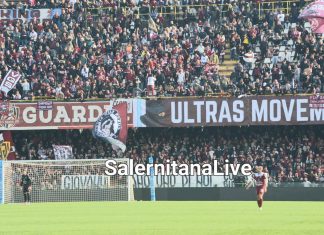 Salernitana Catania la curva sud Siberiano saluta Giovanni Pisani all’Arechi